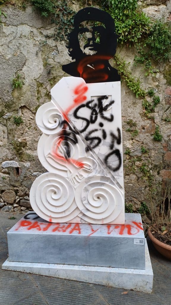 È stata vandalizzata la statua dedicata ad Ernesto Che Guevara sulla scalinata del Baluardo. Un gesto che merita di essere condannato e stigmatizzato con forza, tanto perché va a deturpare un monumento che fa parte del patrimonio cittadino, quanto per quello che quella statua rappresenta: un simbolo di libertà, altruismo, uguaglianza e giustizia sociale, soprattutto in un mondo in cui la prevaricazione sul più debole è tornata a essere al centro della politica mondiale.