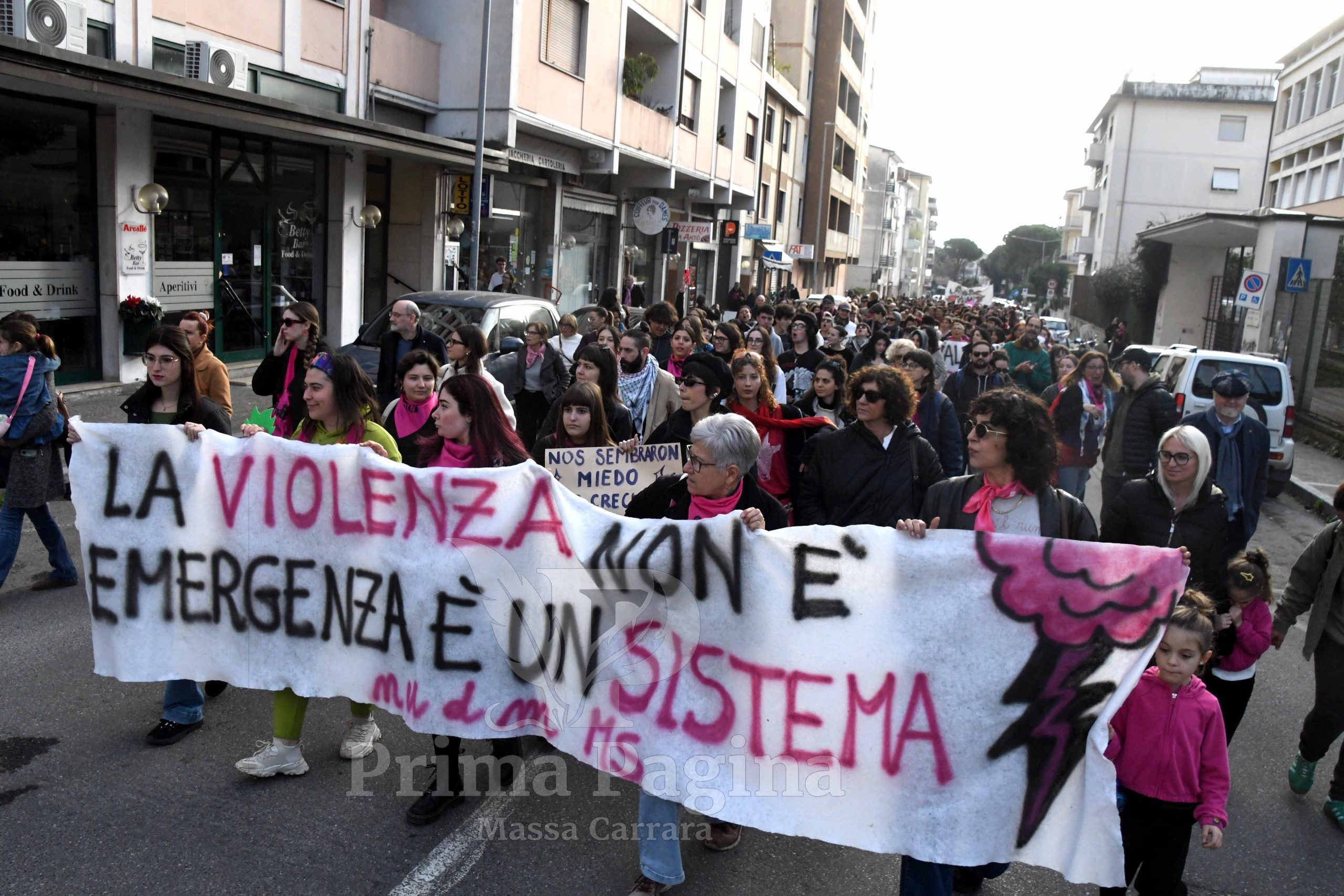 Il corteo delle donne in transito nelle vie del centro di Massa