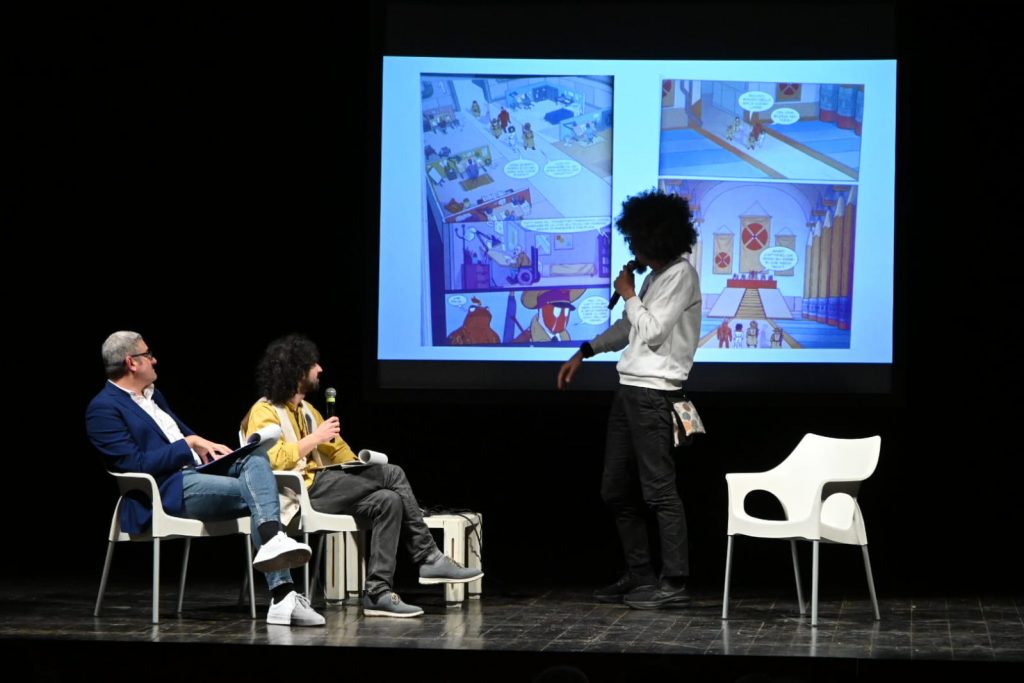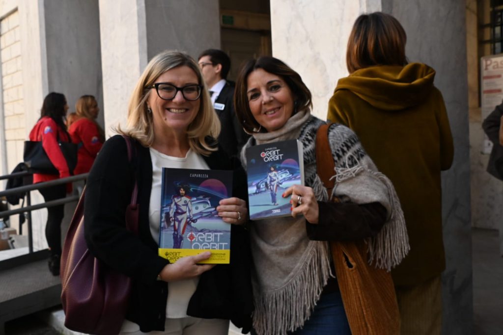 Il celebre cantautore pugliese (il cui nome in dialetto dignifica testa riccia) ha presentato il suo fumetto nel pomeriggio festivo di domenica scorsa. Dopo i saluti di Micol Giusti, direttrice artistica del festival e rappresentante di SM Comunicazione Digitale, Caparezza ha ripercorso le origini della propria opera, spiegando come Orbit Orbit sia profondamente legato alla sua vita, sia privata che pubblica. L’opera non è soltanto un progetto artistico fine a sé stesso: il cantautore ha rivelato come essa rappresenti un ponte ideale verso la pubblicazione del suo prossimo album musicale, un percorso narrativo e creativo che si sviluppa su più linguaggi espressivi.