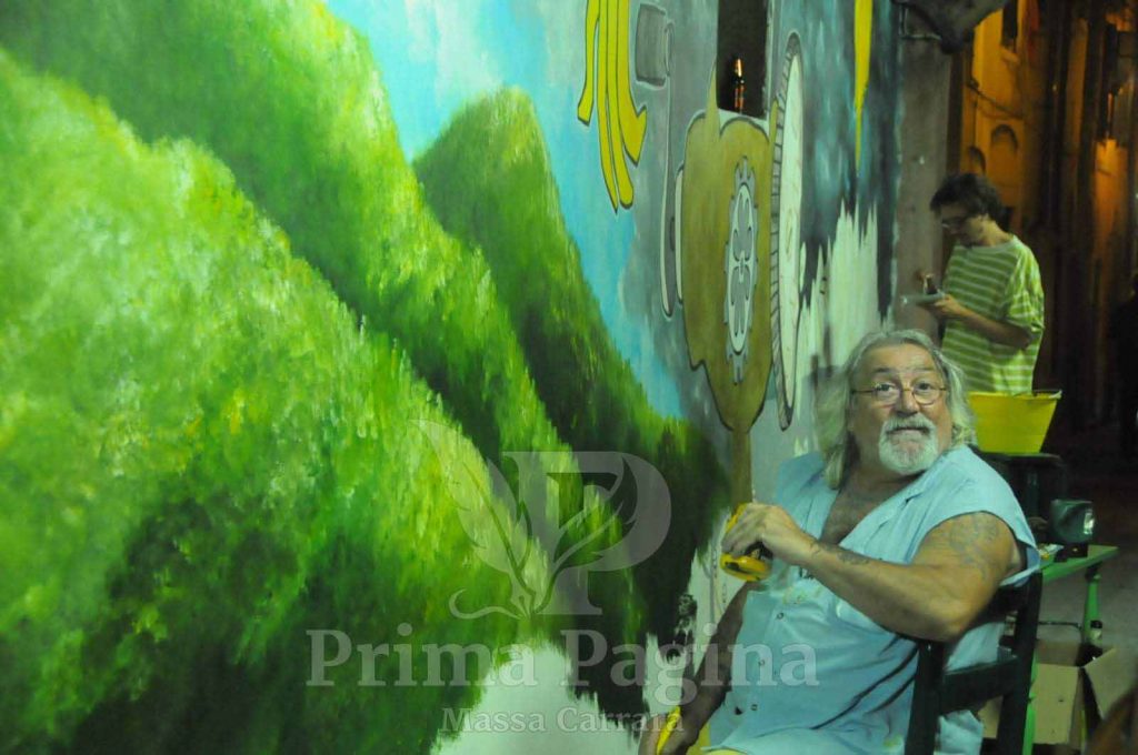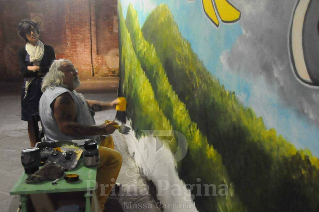 Non aveva paura di prendere posizione. Con l’artista Robo, ha realizzato opere di denuncia come il celeberrimo murale di vicolo dell’Arancio, in cui le cave sono rappresentate come “macinate”, simbolo di un territorio sfruttato e ferito. Un’opera forte che ha aperto un dibattito pubblico ancora attuale sul futuro delle Apuane.