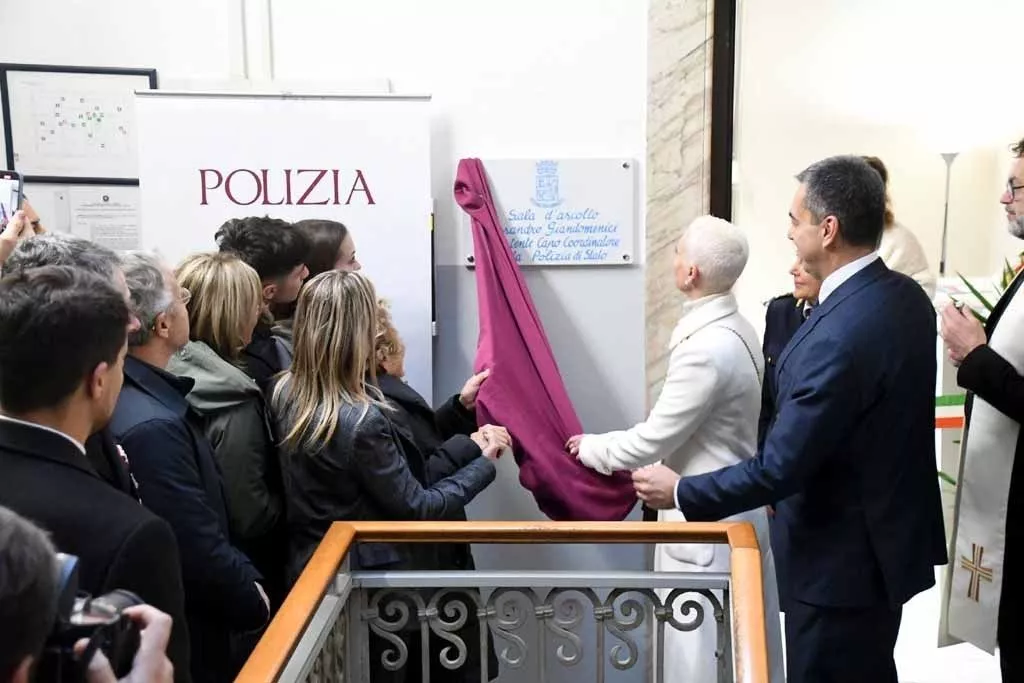 La sala è stata dedicata alla memoria dell’Assistente Capo Coordinatore Alessandro Giandomenici che, nei suoi trent’anni di Polizia, ha prestato servizio alla Squadra Volanti del Commissariato; presenti i parenti più stretti del caro Alessandro, parte attiva nelle celebrazioni, unitamente a Don Piero Albanesi.