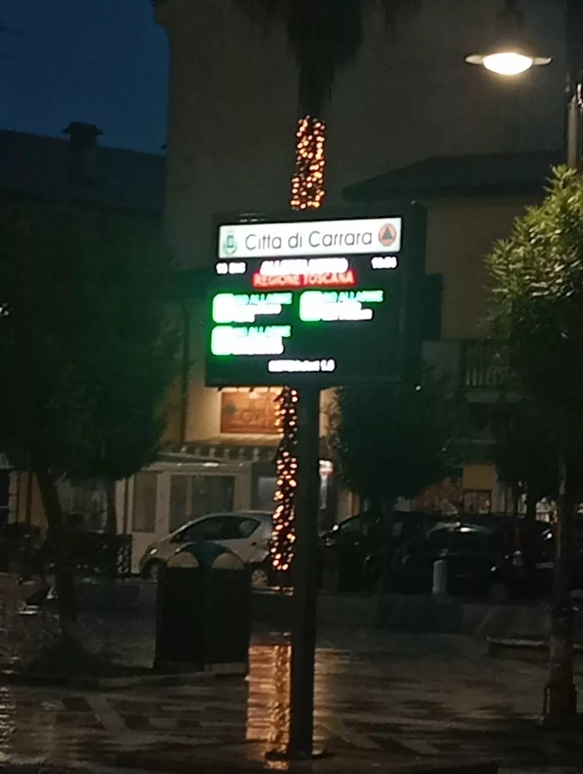 CARRARA - Ogni volta che piove il mio pensiero corre a quei pannelli che segnalano l'allerta meteo collocati dall'amministrazione comunale in varie parti della città. E immagino un cittadino di mezza età che, dalla finestra di casa, osserva il nubifragio in corso. “Ci sarà allert...
